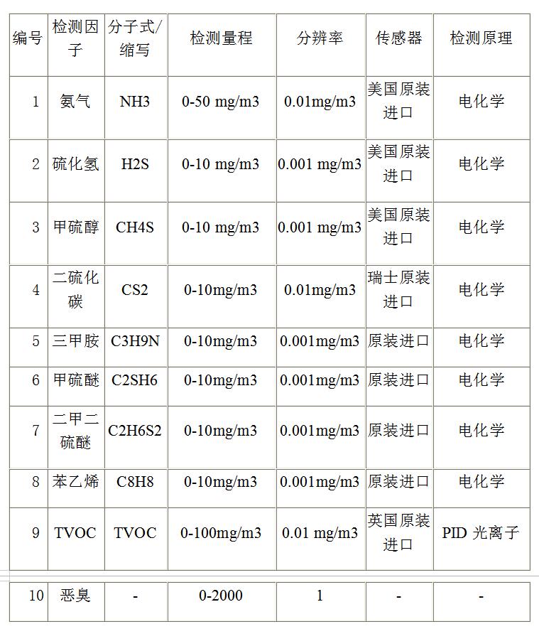 《惡臭污染物排放標(biāo)準(zhǔn)(GB14554-1993)》規(guī)定的控制惡臭物質(zhì)包括臭氣在內(nèi)的九種指標(biāo)(氨氣、三甲胺、硫化氫、甲硫醇、甲硫醚、二甲二硫、二硫化碳、苯乙烯、臭氣)